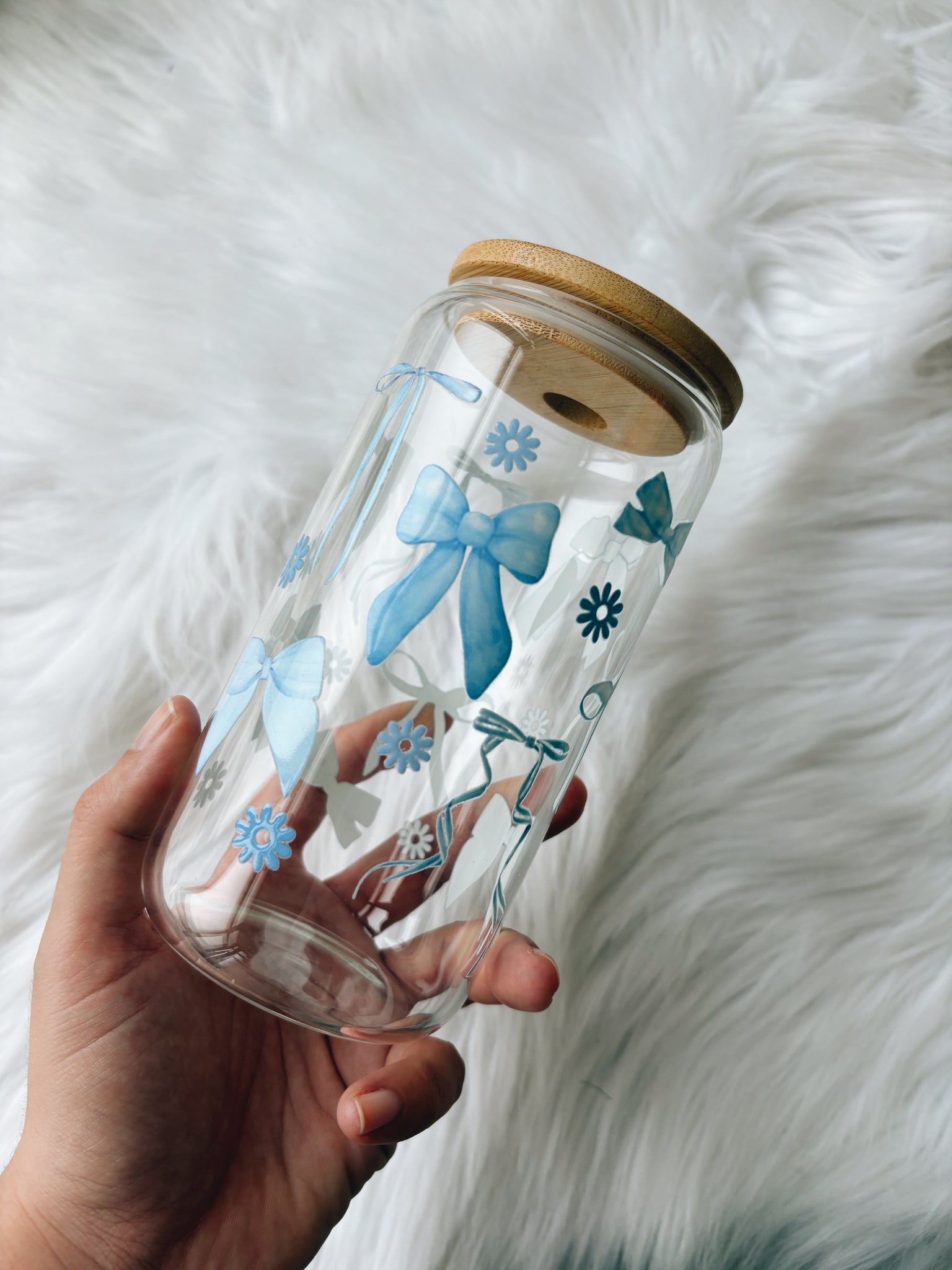 Sip in style with our aesthetic glass cup, designed to make every drink feel a little more special. Made from durable glass and paired with a natural bamboo lid, each cup comes with a matching glass straw — perfect for your favorite cold beverages like iced coffee, smoothies, juice, or tea.